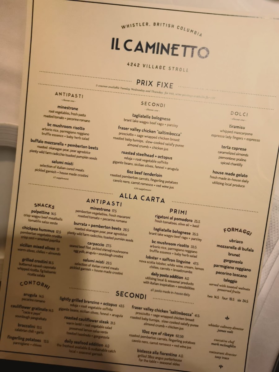 Welcome to Il Caminetto, a culinary gem nestled in the heart of Whistler, BC. This Italian restaurant offers a sophisticated menu that showcases the artistry of traditional Italian cuisine, with a focus on fresh, local ingredients. Guests can indulge in heavenly Primi dishes, such as the delicate Spring Pea Stracciatella Ravioli or the perfectly crafted Rigatoni Al Pomodoro.